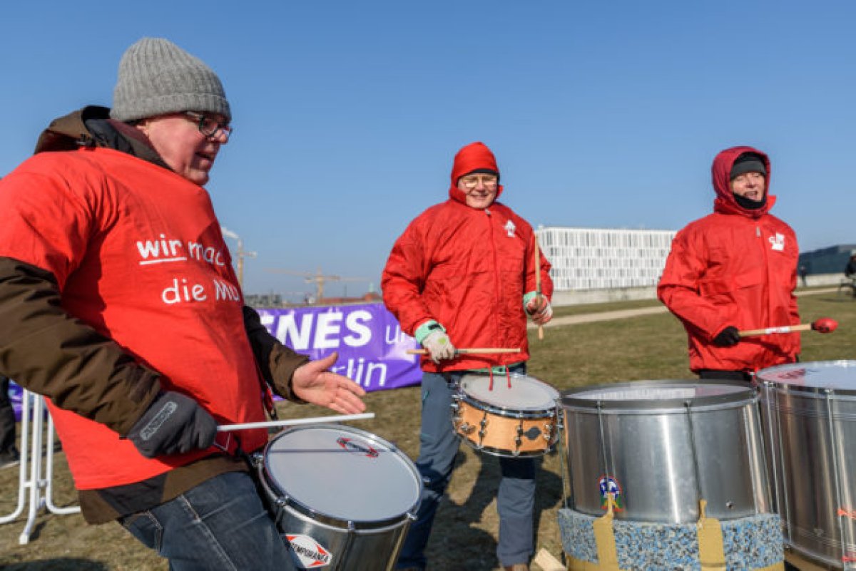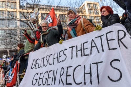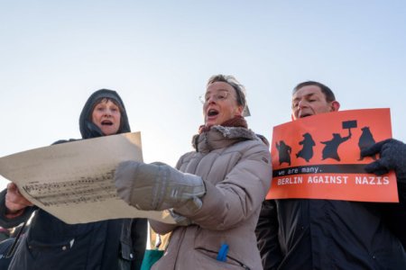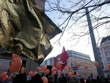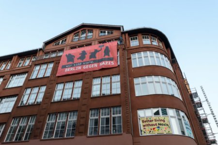 Die Anwohner_inneninitiative für Zivilcourage – Gegen Rechts organisierte eine Kundgebung in ihrem Wohnviertel neben dem Friedrichstadt-Palast und wurde dieses Mal - anders als im Jahr zuvor (1./ 2.) - erstmals mit einem direkt vorbeiziehenden rechtsextremen Aufmarsch konfrontiert. Auch hier versammelten sich ca. 300 Menschen und setzten neben lautstarkem Protest mit Trillerpfeifen und Topfschlagen mit goldenen Fahnen, Musik und Redebeiträgen kreative Zeichen gegen Neonazis.