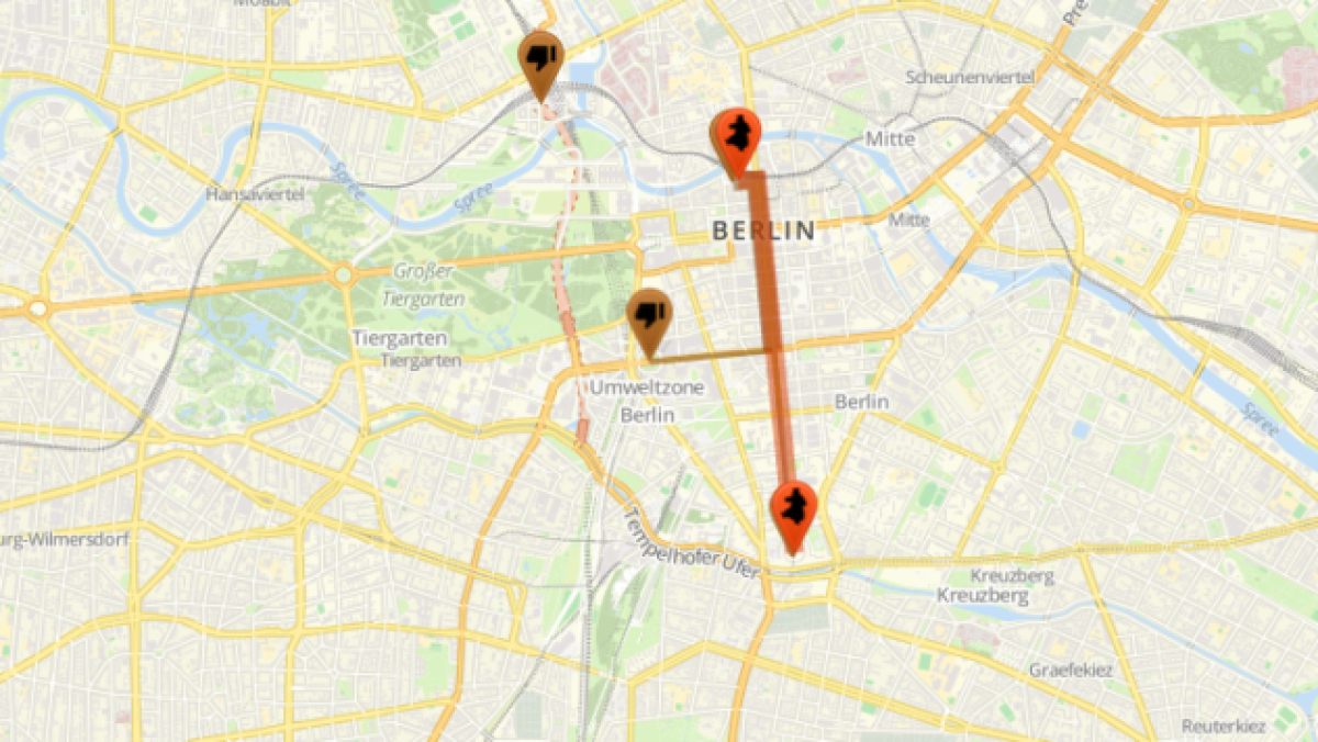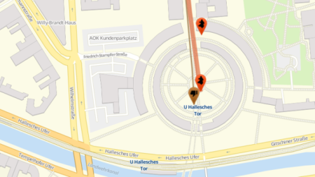 - „Merkel muss weg“-Aufmarsch ab 19.00 Uhr: Angemeldete Alternativroute für unter 100 Personen Startpunkt: Dorothea Schlegel-Platz (S-Bahnhof Friedrichstraße Südseite) – Georgenstraße – Friedrichstraße – Endpunkt: Mehringplatz (U- Bahnhof Hallesches Tor)