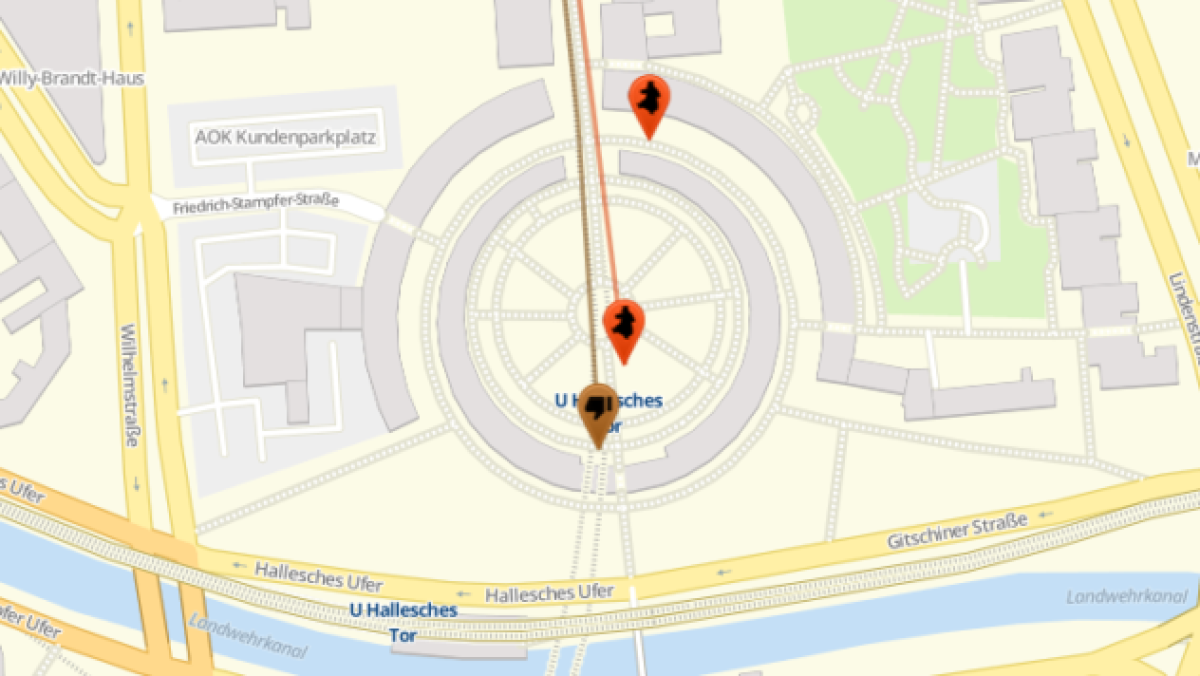 - Möglicher „Merkel muss weg“-WfD-Aufmarsch ab 19.00 Uhr: Angemeldete Alternativroute für unter 100 Personen Startpunkt: Dorothea Schlegel-Platz (S-Bahnhof Friedrichstraße Südseite) – Georgenstraße – Friedrichstraße – Endpunkt: Mehringplatz (U- Bahnhof Hallesches Tor)