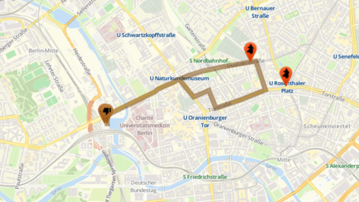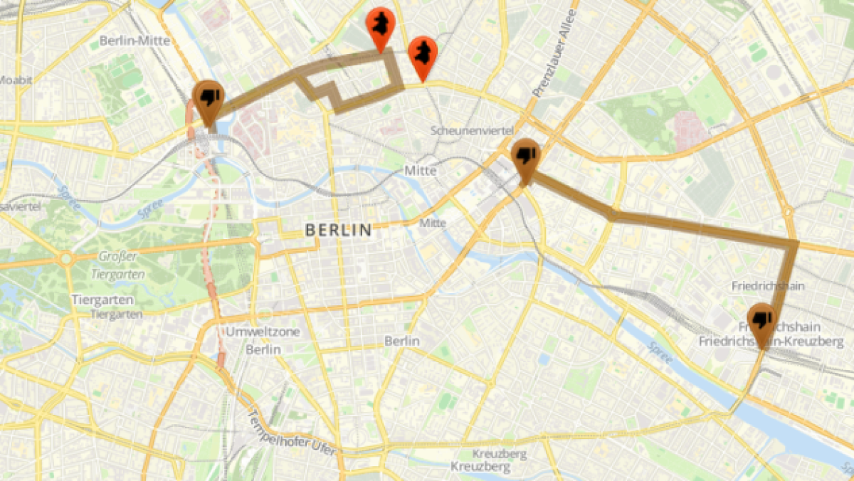 Überblickskarte rechtsextreme WfD-Aufmärsche 03.10.2018, Berlin-Mitte/Friedrichshain (Stand vom 02.10.2018, Änderungen möglich)