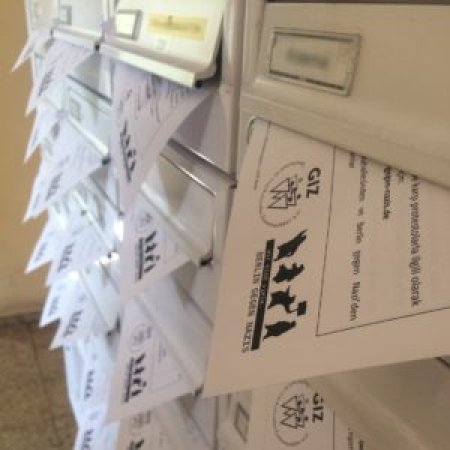 Erst am Donnerstagvormittag vor dem Aufmarsch wurden die Routen der beiden Aufmärsche in Spandau und Berlin veröffentlicht. Gemeinsam mit einer Partner_innenorganisation aus dem Berlin gegen Nazis Netzwerk konnten durch eine kurzfristigen Flyeraktion die Anwohner_innen der Aufmarschroute im Spandauer Ortsteil Staaken über den bevorstehenden Aufmarsch informiert werden. DieFlyer in 13 Sprachen stießen auf sehr positive Resonanz und viele Anwohner_innen nahmen an den Protesten gegen den "Heßmarsch" in Spandau teil. Für eine gleichzeitige Aktion dieser Art in Friedrichshain und Lichtenberg fehlten jedoch die Kapazitäten.