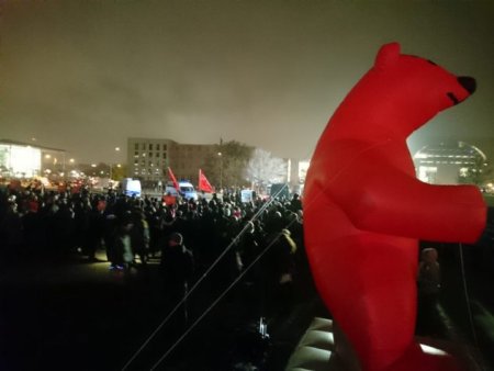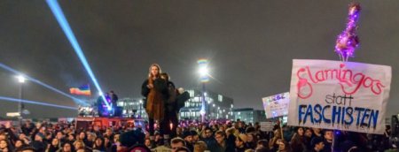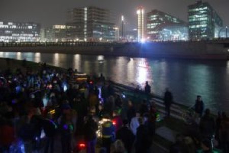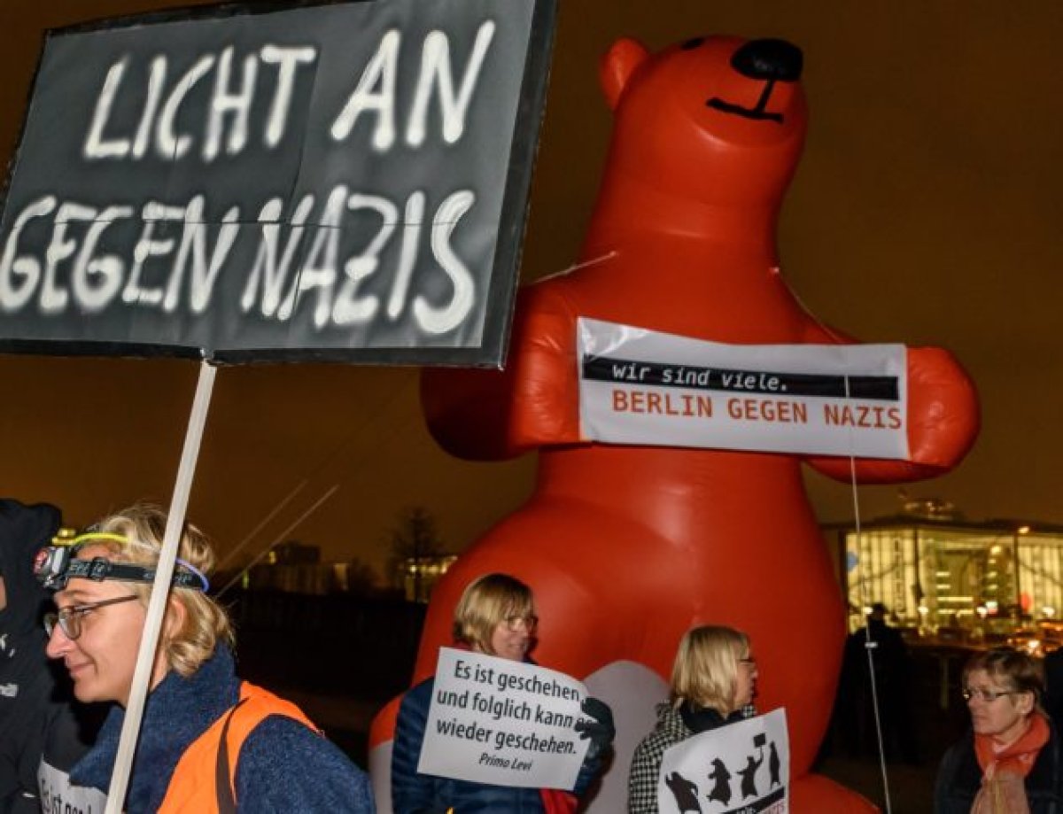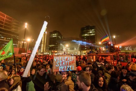 Zum Startzeitpunkt des rechtsextremen Aufmarsch (18.30 Uhr) vereinigte sich am gegenüberliegenden Spreeufer im Spreebogenpark eine bunt leuchtende Demonstration mit vielen Familien und Kindern aus Mitte unter dem Motto „Licht an gegen Nazis“, organisiert von der Tanzversammlung Rosenthaler und der Anwohnerinitiative für Zivilcourage – Gegen Rechts mit der Kundgebung vom Bündnis für ein weltoffenes und tolerantes Berlin. Auf der Kundgebung des Bündnis von Kirchen, Gewerkschaften, Wohlfahrtsverbänden und weiteren großen zivilgesellschaftlichen Organisationen protestierten während des vorbeiziehenden rechtsextremen Aufmarsches über 1000 Teilnehmende gegen die rechtsextreme Provokation.