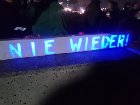 Um 17.00 Uhr begann die seit 1990 stattfindende Gedenkveranstaltung der Berliner Vereinigung der Verfolgten des Naziregimes – Bund der Antifaschistinnen und Antifaschisten VVN-BdA am Deportationsmahnmahl in der Levetzowstraße in Moabit. Auf der Kundgebung sprach der über 90 Jahre alte Horst Selbiger, Ehrenvorsitzender des Vereins „Child Survivors Deutschland“. Im Anschluss machte sich eine antifaschistische Demonstration mit über 1000 Teilnehmer_innen auf den Weg zu Hauptbahnhof. Direkt neben der Moltkebrücke harrten die Teilnehmer_innen mehrere Stunden aus und protestierten direkt an der Aufmarschroute gegen den rechtsextremen Aufmarsch.