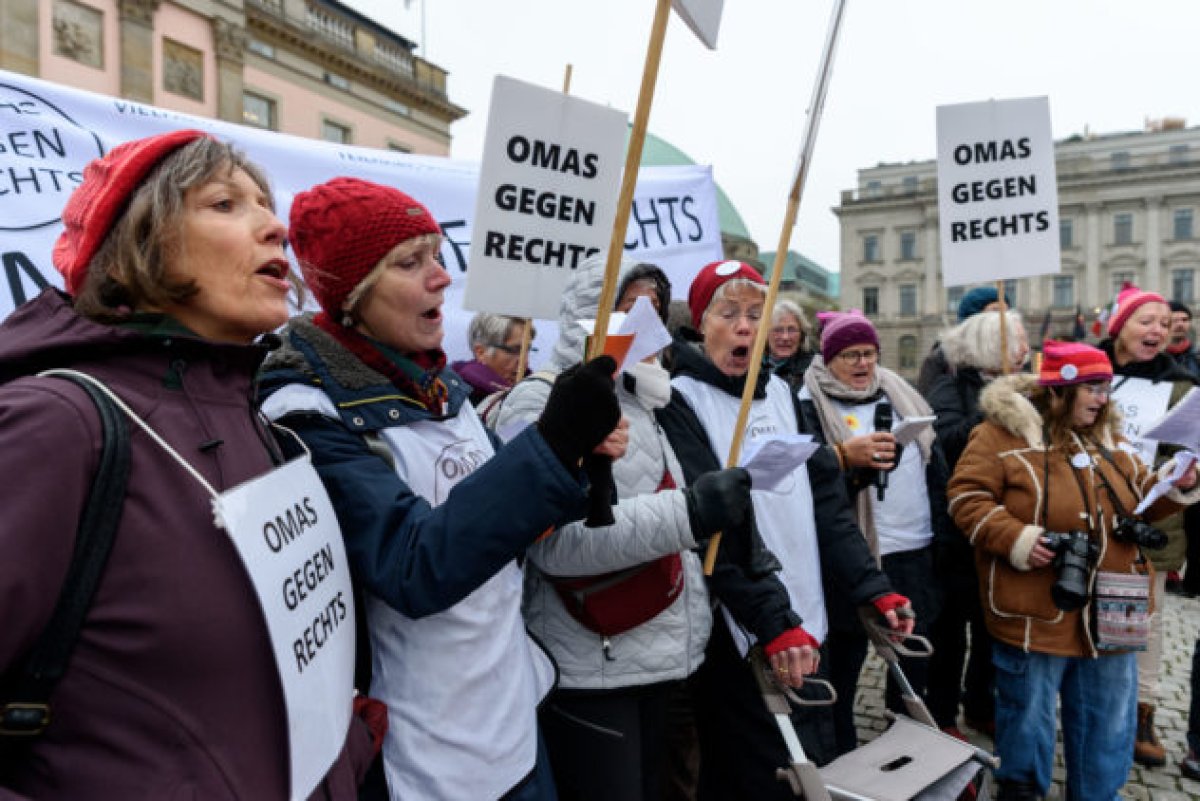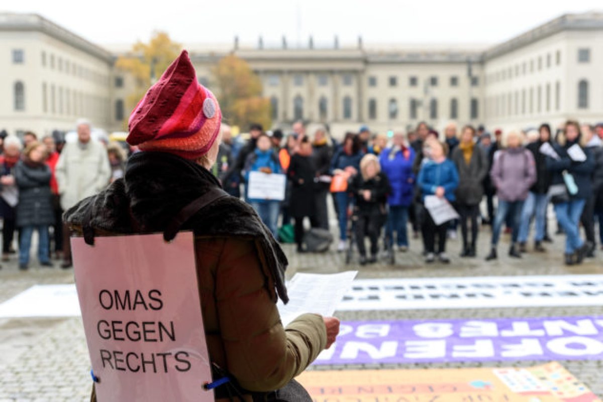 Fotos: Florian Boillot Gesangseinlage der Omas gegen Rechts Berlin auf der Kundgebung vom Bündnis für ein weltoffenes und tolerantes Berlin, Bebelplatz, 09.11.2019.
