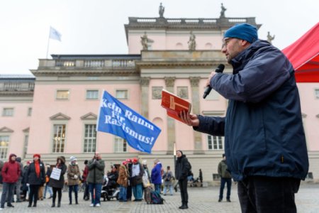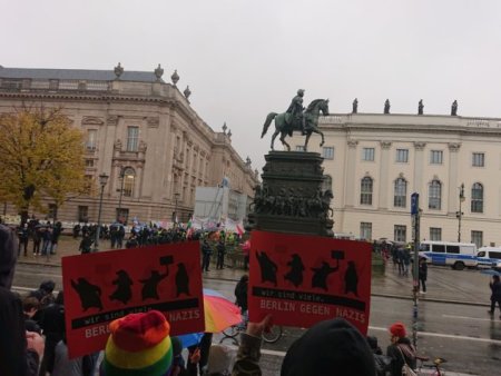 Protest auf dem Bebelplatz gegen den vorbeiziehenden Reichsbürgeraufmarsch. 09.11.2019