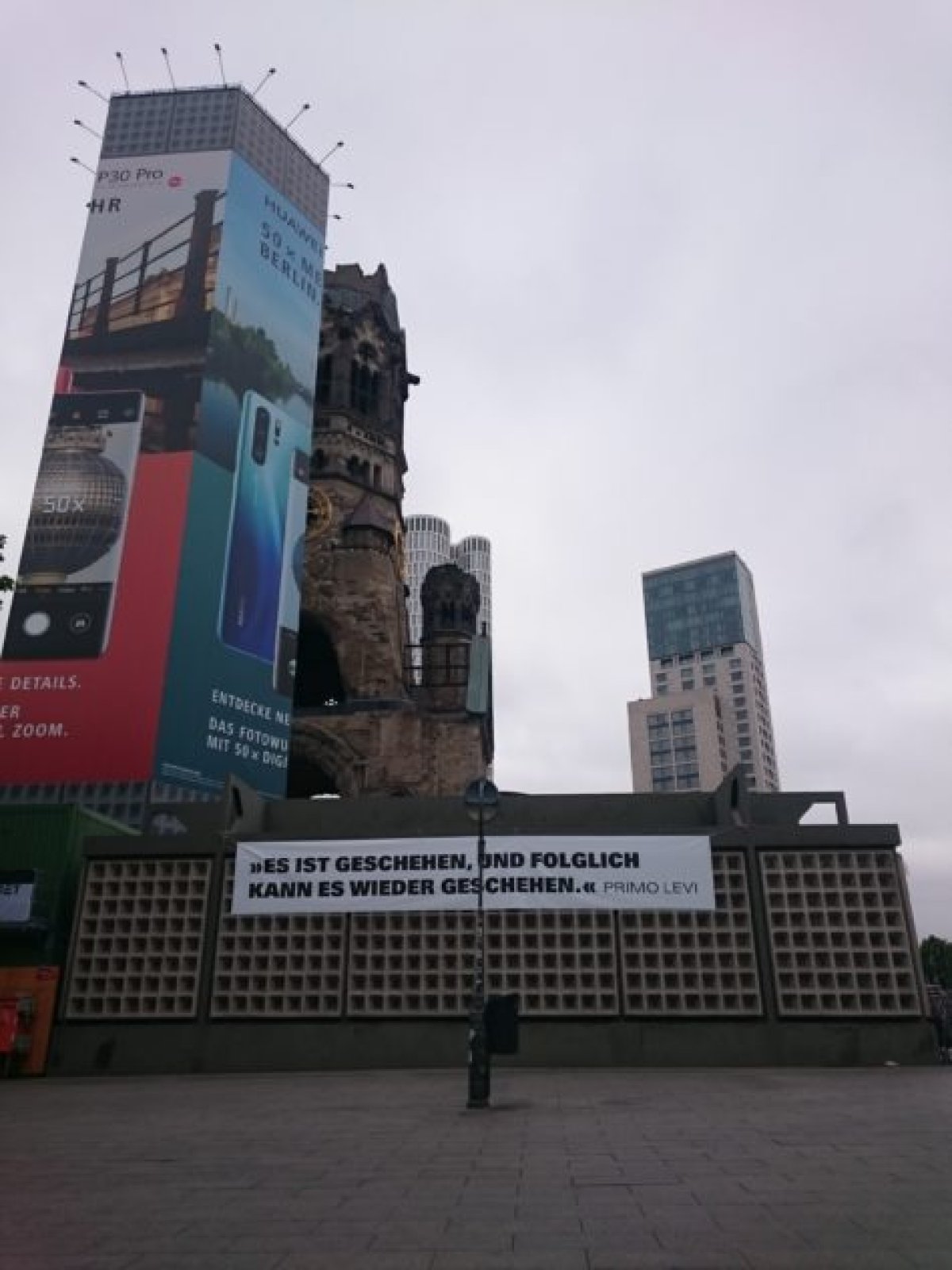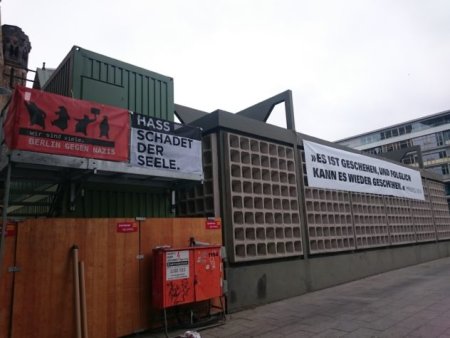 Die Bilder des Tages vom Protest gegen eine rechtsextreme Kundgebung am 14. Juli 2019 Primo Levi "Es ist geschehen, und folglich kann es wieder geschehen" Positionierung an der Kaiser-Wilhelm-Gedächtniskirche gegen die rechtsextreme Kundgebung am Breitscheidplatz, 14.07.2019 - Foto: Berlin gegen NazisPositionierung an der Kaiser-Wilhelm-Gedächtniskirche gegen die rechtsextreme Kundgebung am Breitscheidplatz, 14.07.2019 - Foto: Berlin gegen Nazis