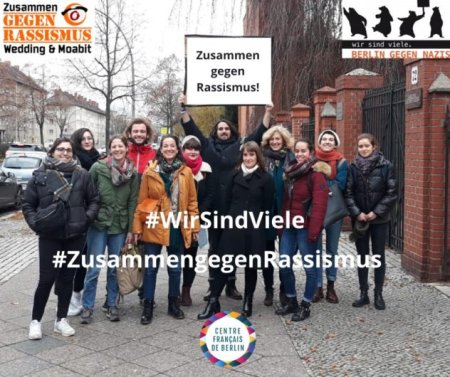 Berlin gegen Nazis freut sich sehr über die neu begründete Partnerschaft mit dem Centre Français de Berlin!Neben der großen Bündnisdemonstration am Tag gegen Rassismus wurden in den Internationalen Wochen gegen Rassismus in Berlin von unterschiedlichsten Akteuren Veranstaltungen organisiert. Das Bündnis Zusammen gegen Rassismus in Wedding & Moabit hat in den Aktionswochen über 60 Veranstaltungen geplant, die nahezu alle abgesagt werden mussten. Auch eine Veranstaltungsreihe der Bibliotheken in Pankow gemeinsam mit dem Pfefferwerk und viele einzelne Veranstaltungen in anderen Bezirken waren von den Absagen getroffen. In Deutschland bündelt die Stiftung gegen Rassimus alle Aktivitäten. In diesem Jahr standen die Wochen unter dem Motto „Gesicht zeigen – Stimmer erheben“.