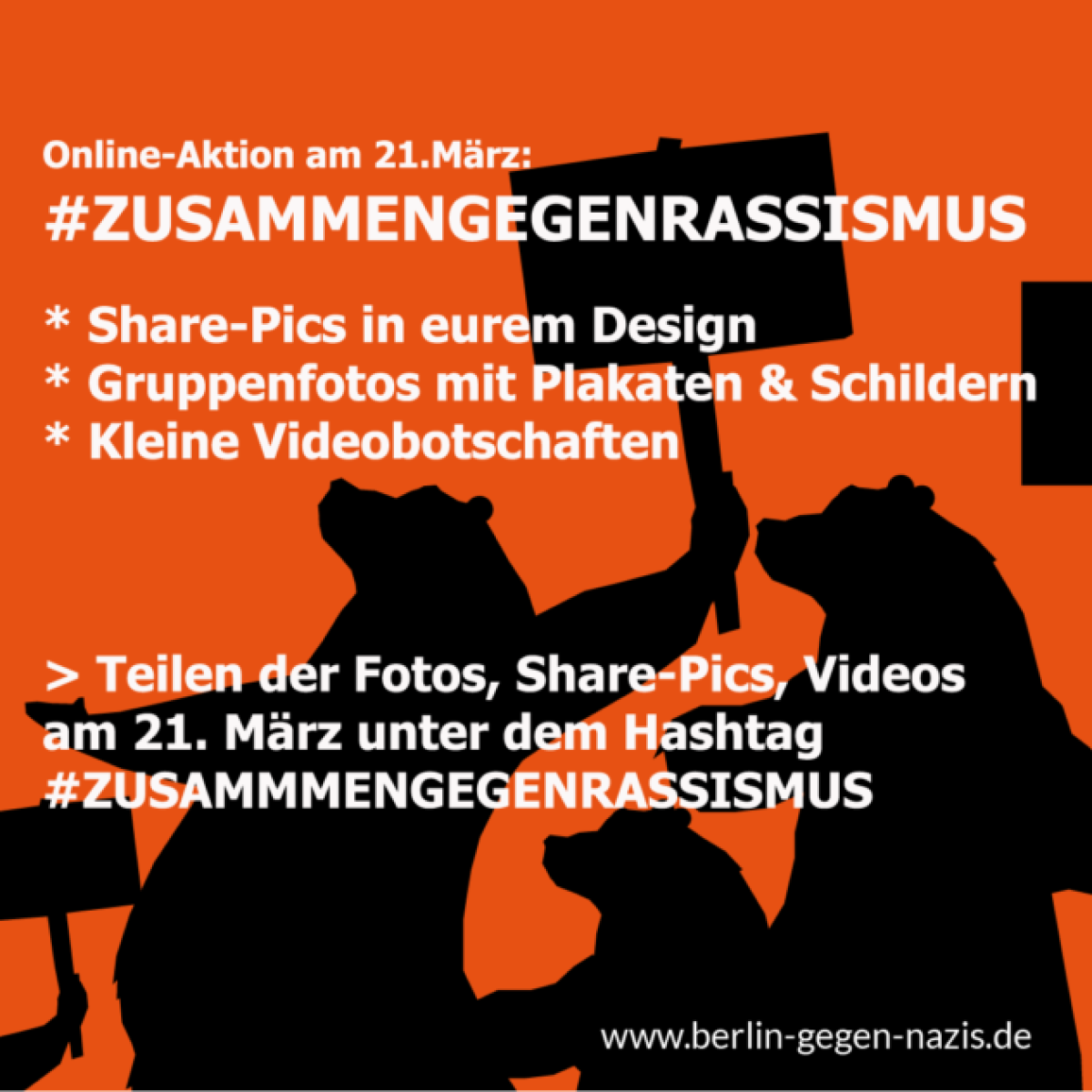 Gedenkort für Burak Bektaş in Berlin-NeuköllnBerlin gegen Nazis hat in der jüngsten Vergangenheit bereits zwei Online-Aktionen begleitet, die sehr erfolgreich waren. Zum Internationalen Tag gegen Rassimus folgten viele dem Aufruf eines breiten Bündnisses sich unter dem Hashtag #ZUSAMMENGEGENRASSISMUS online zu positionieren.