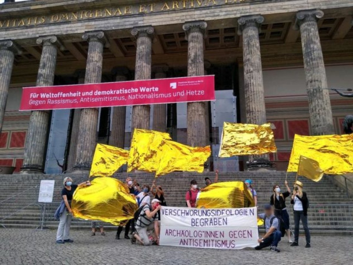 Gegenkundgebung vor dem Alten Museum am 04.07.20Bereits vor drei Wochen kam es zu einer Positionierung der Staatlichen Museen zu Berlin gegen die davor seit vielen Wochen vor dem Alten Museum abgehaltenen verschwörungsideologischen Kundgebungen. An diesem Samstag findetzudem zum dritten Mal eine angemeldete Gegenkundgebung (Facebook-Link) im Lustgarten statt. Neben den Künstler_innen Die Vielen beteiligt sich daran u.a. auch die Anwohner*inneninitiative für Zivilcourage – Gegen Rechts. In den vergangenen zwei Wochen wählte der verschwörungsideologische Autokorso kurzfristig als neues Ziel die Messe Berlin bzw. den Hauptbahnhof. Die Messe Berlin hat sich umgehend und deutlich am Tag der verschwörungsideologischen Kundgebung selbst durch ein Statement auf Twitter von deren Inhalten distanziert und damit erfolgreich positioniert. Aktuell wird erneut in den Lustgarten mobilisiert. Änderungen sind möglich.