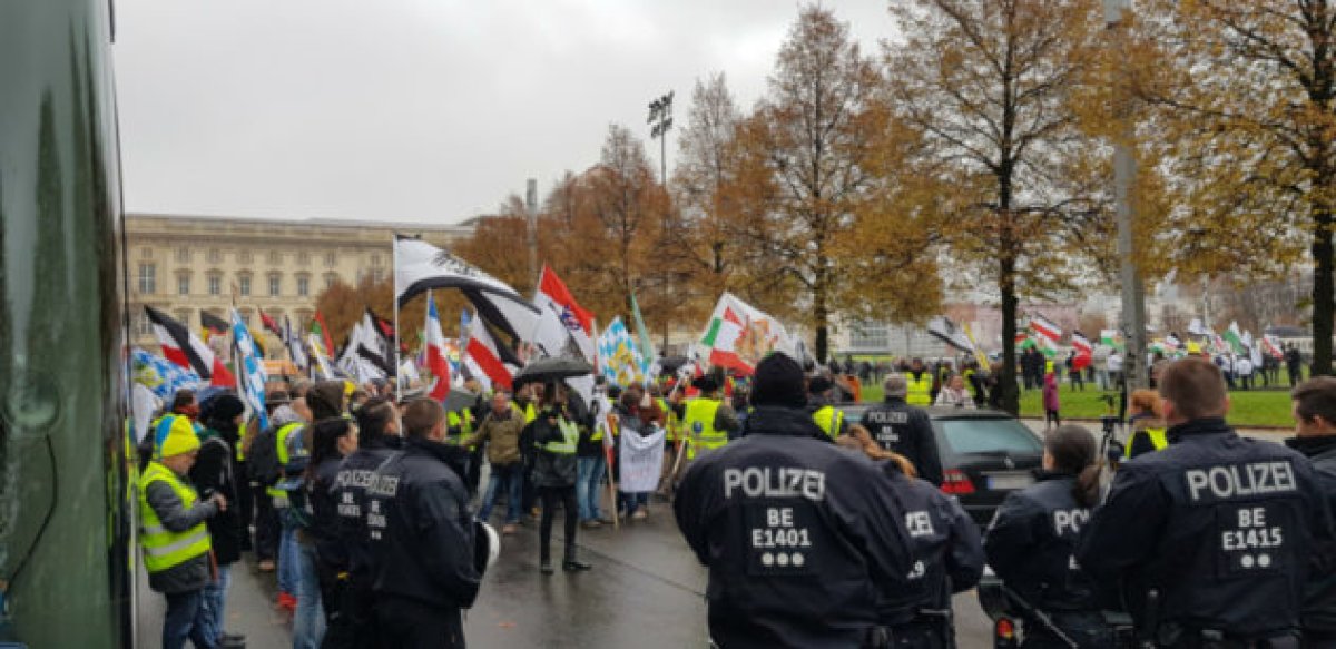 Aufmarsch von Reichsbürgern am 09.11.2019 in Berlin - Foto:Berlin gegen NazisDie Mobile Beratung gegen Rechtsextremismus Berlin – MBR schreibt in ihrer aktuellen Einschätzung zum 20.März u.a.:
