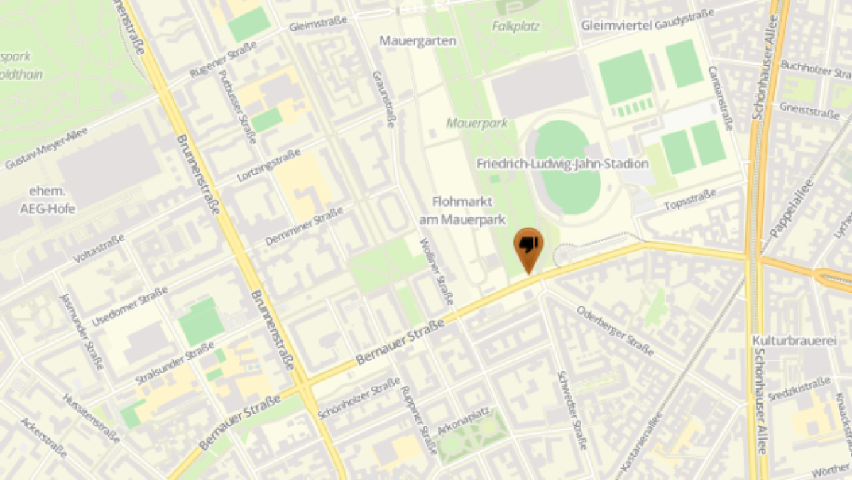 -> Route: Brandenburger Tor - Unter den Linden - Karl-Liebknecht-Str. - Memhardstr. - Rosa-Luxemburg-Str. - Torstr. - Tucholskystr. - Ebertsbrücke - Am Weidendamm - Reichstagufer - Wilhelmstr. - Brandenburger Tor