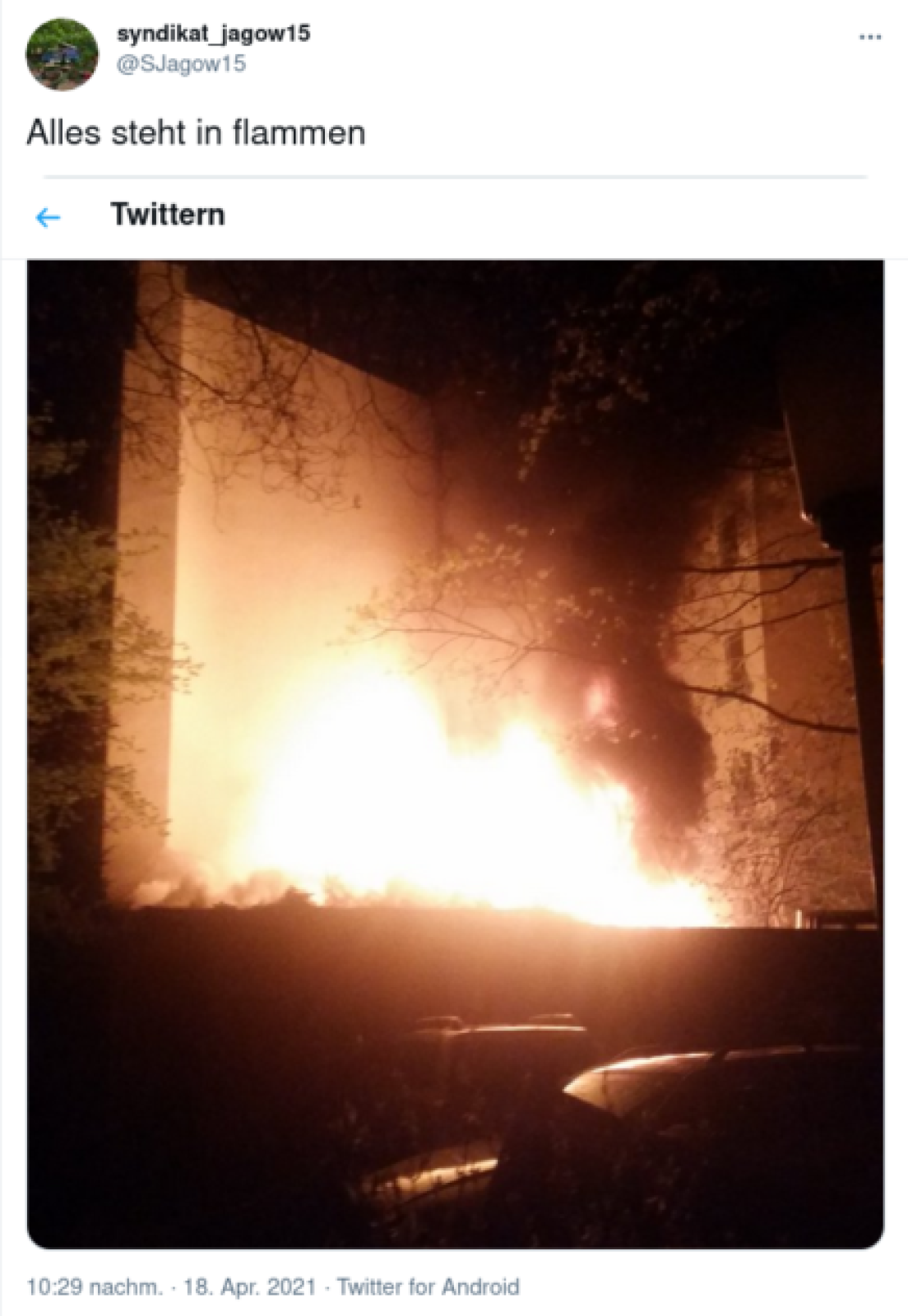 Was bisher geschah: In der Nacht vom 4. auf den 5 Mai wurde das Hausprojekt in der Spandauer Jagowstr. 15 zum zweiten Mal innerhalb weniger Wochen aufgrund einer Bombendrohung evakuiert. Die erste Evakuierung war in der Nacht vom 20. auf den 21.04 geschehen. Im April gab es zwei Brandanschläge auf das Haus, trotz massiver Feuer in der Hofeinfahrt und im Hof gab es glücklicherweise nur leicht verletzten Bewohner_innen und die Feuer erfassten das Wohnhaus nicht. Der erste Brandanschlag erfolgte in der Nacht vom 8. auf den 9. April. 10 Tage später die zweite Brandstiftung in der Nacht vom 18. auf den 19. April.In einem Statement vom 23. April schreiben die Bewohner_innen der Jagowstr. 15:
