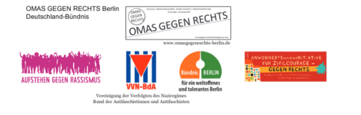 - 11.00 Uhr zentraler Gegenprotest und Schutzkundgebung am Holocaust-Mahnmal, Omas gegen Rechts Berlin, Ebertstraße (Behrensstr. bis Hannah-Arendt-Straße)