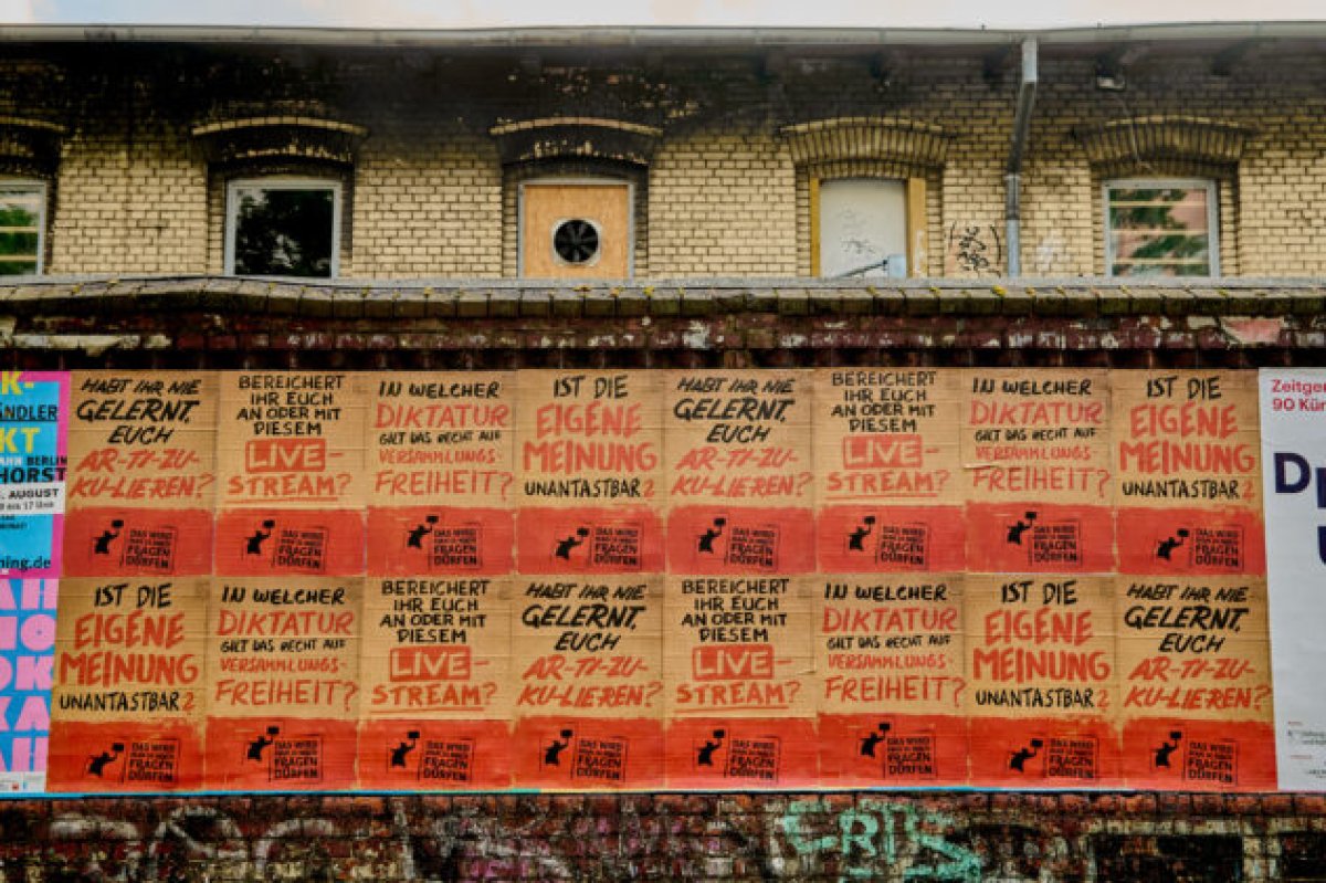 Fotos: Berlin gegen Nazis/Florian Boillot„DAS WIRD MAN JA NOCH FRAGEN DÜRFEN“ rahmt die verschwörungsideologischen Aktivitäten im wörtlichen Sinne plakativ. Mal ironisch, mal ernst gemeint. Fragend erinnert die Kampagne an die tatsächliche Bedeutung von Grundrechten, wie der Meinungsfreiheit. Die Frage: „Ist die eigene Meinung unantastbar? verweist auf die Verwechslung der Meinungsfreiheit durch „Querdenkende“ mit dem Artikel 1 des Grundgesetzes „Die Würde des Menschen ist unantastbar“. Das ist ernstzunehmen und macht Widerspruch und klare Positionierung notwendig. Eine eigene Meinung schützt nicht vor Kritik und Widerrede und vor allem hat die Meinungsfreiheit ihre Grenzen dort, wo die Würde anderer Menschen angetastet wird. Ausführlich deutsch /englisch /türkisch