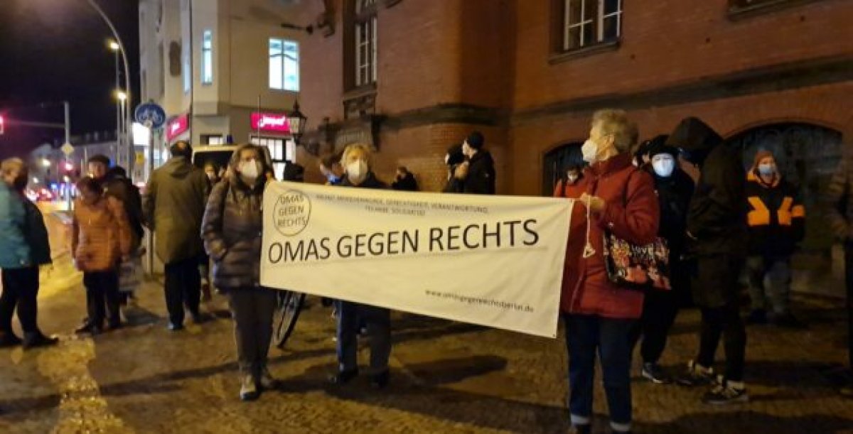 Sie werden u.a. unterstützt von den Omas gegen Rechts Berlin, die seit 2020 durchgehend gegen verschwörungsideologische Versammlungen protestieren und viele zentrale Proteste mitorganisierten. Auch die Pankower VVN-BdA und die Initiative Geradedenken.kollektiv unterstützt am Rathaus. Gemeinsam nehmen sie seit dem 03.01. an jedem Montag den unangemeldeten verschwörungsideologischen Demonstrationen erfolgreich das Ziel.