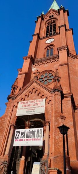 Hintergründe zum Fest und dem Engagement der Initiative GethsemanekiezSeit dem Aufkommen der "Montagsdemonstrationen" (ausführliche Hintergründe u.a. hier) auch in Berlin im Dezember 2021 hatte die Gethsemanekirche Anziehungskraft auf Personen und Gruppen aus dem verschwörungsideologischen Spektrum. Die Gethsemanekirche ist ein zentraler Ort der Oppositionsbewegung in der DDR und bis heute ein politischer Ort für Menschenrechte. Eines der zentralen Narrative der verschwörungsideologischen Versammlungen ist der angebliche Widerstand gegen eine „Corona-Diktatur“ häufig verbunden mit Verharmlosungen des Nationalsozialismus, mit dem die staatlichen Maßnahmen zur Eindämmung der COVID-Pandemie verglichen werden. Seit Beginn der verschwörungsideologischen Versammlungen im Frühjahr 2020 gab es aber auch Vergleiche mit der Endphase der DDR und dem eigenen Handeln als friedliche Demokratiebewegung für Menschenrechte oder als Protagonist_innen einer erneuten „Wende“ wie 1989. Die Gethsemanekirche sollte, wie zuvor der Rosa-Luxemburg-Platz zum symbolischen Ort der verschwörungsideologischen Proteste werden.