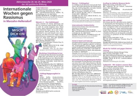 Das gesamte Programm der Internationalen Wochen gegen Rassismus in Hohenschönhausen ist hier verfügbar.