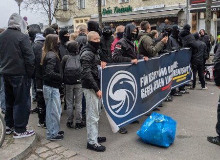 Der gescheiterte Neonazi-AufmarschDer Aufruf von Einzelpersonen aus dem Umfeld der AfD und der Jungen Alternative (JA), die sich in den sozialen Medien als "Aktionsbündnis Berlin" präsentieren, stieß zwar bei den etablierten rechtsextremen Strukturen in Berlin im Vorfeld auf wenig Resonanz. Einige Protagonist_innen, die sich mit dem neuen rechtsextremen Label „Deutsche Jugend voran“ (DJV) identifizieren, nahmen jedoch am Aufmarsch teil. Nach dem Aufmarsch in Marzahn im Oktober war es das zweite mal innerhalb kurzer Zeit, dass diese teils sehr jungen Neonazis martialisch und größtenteils vermummt auftraten. Sie skandierten rechtsextreme Parolen und drohten Anwohner_innen, von denen sich viele aus ihren Fenstern heraus und mit Bannern an Balkonen spontan positionierten.