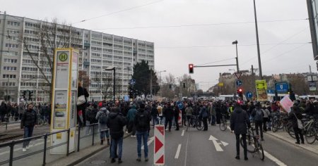 Im Südkiez beschallten Gegenproteste von Geradedenken sowie die Tanz-Demo mit dem Motto „Bumm Bumm statt blau-braun“ mit Soundsystemen die Neonazis circa 2 Stunden lang, ehe der rechtsextreme Aufmarsch loslaufen konnte. An der Ecke Möllendorffstr./Frankfurter Allee wartete schon der nächste Gegenprotest in Form einer Kundgebung der Omas gegen Rechts. Dass auf dieser Kreuzung viele Menschen spontan direkt auf der angemeldeten Route protestierten, sorgte letztlich dafür, dass die Neonazis ihren Aufmarsch nicht wie geplant bis zum Bahnhof Lichtenberg fortsetzen konnten.