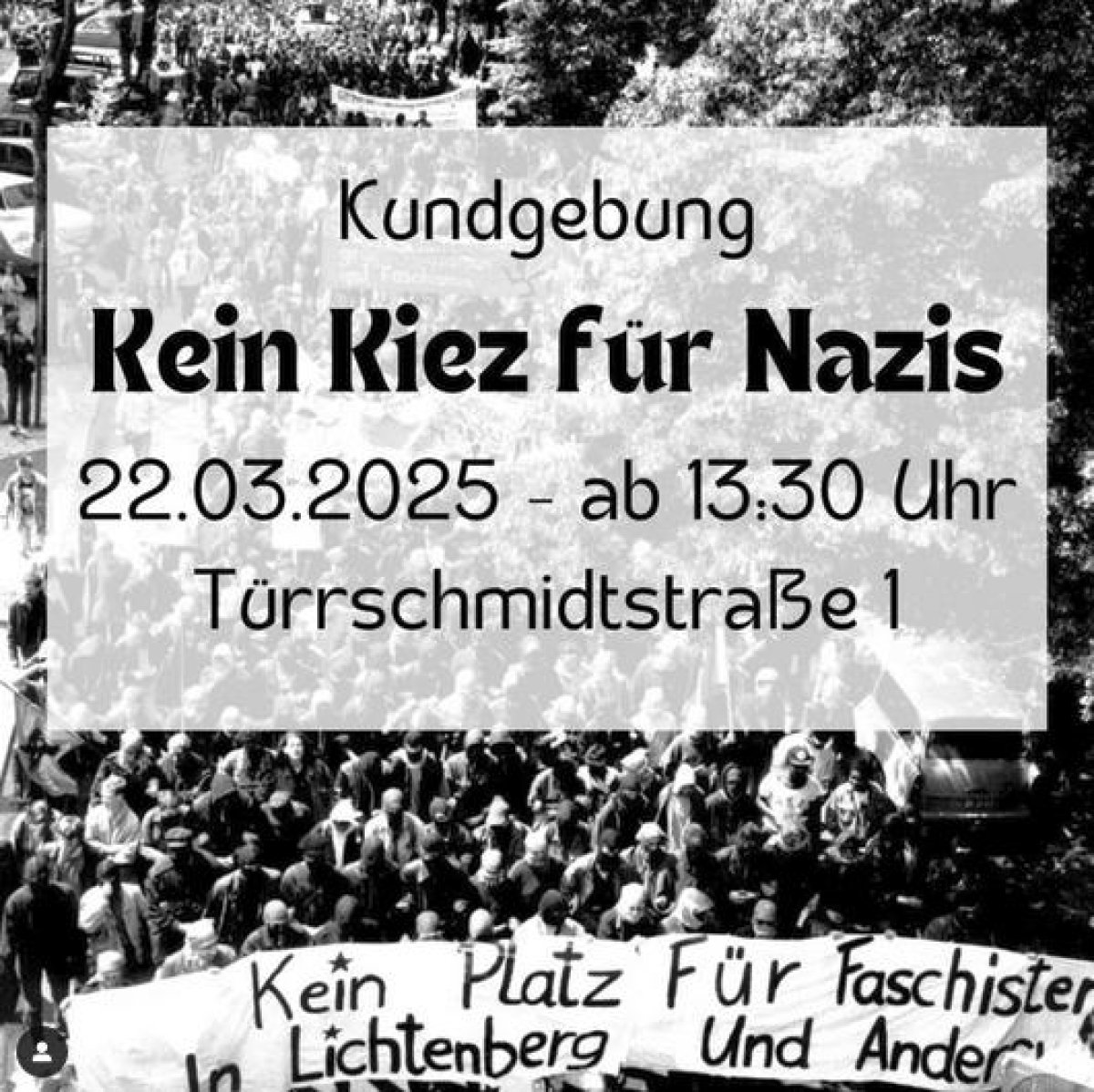 Ab 13:30 Uhr wird es einen kleineren Gegenprotest in der Türrschmidtstraße unter dem Motto „Gegen Faschisten in unserem Kiez und anderswo“ geben.