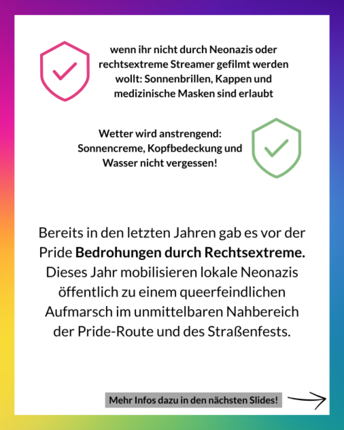 Die Marzahn Pride war in der Vergangenheit bereits im Visier von Neonazis. 2023 brachte die Kleinstpartei „Der III. Weg“ queerfeindliche Transparente entlang der Route an, zudem kam es zu Beleidigungen und einer Störaktion bei der Abschlusskundgebung. Dieses Jahr haben Neonazis einen "Gegenprotest" im Nahbereich der Pride angemeldet, um Teilnehmende einzuschüchtern. Leider keine neue Entwicklung (mehr dazu unten!).
