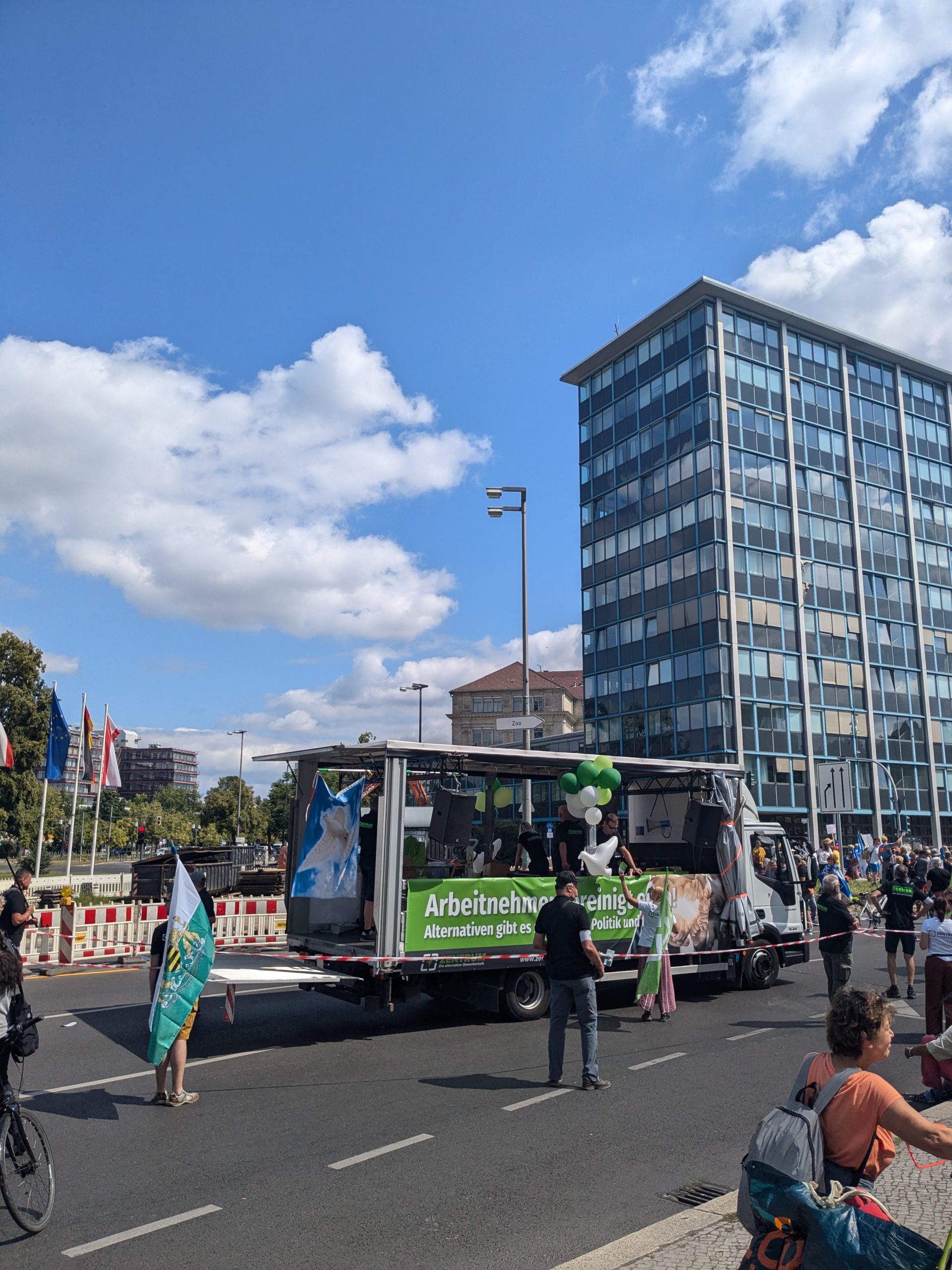 startet eine Gegendemo ab 12:30 Uhr am Neptunbrunnen. Der Aufruf fokussiert sich auf die Beteiligung von Rechtsextremen sowie die Instrumentalisierung des Strebens nach Frieden und wird von vielen Initiativen, Gewerkschaften und Parteien unterstützt.