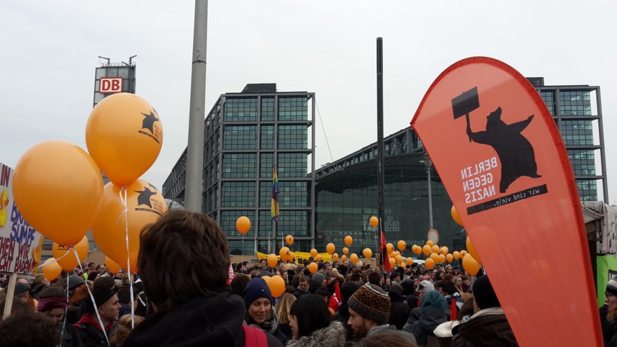 Der rechtsextreme Aufmarsch sollte um 15.00 Uhr beginnen, verzögerte sich jedoch aufgrund einer Blockade auf der Route der Rechtsextremen um zwei Stunden. Währenddessen setzten viele Menschen auf dem Washingtonplatz am Hauptbahnhof direkt am Treffpunkt der Rassist_innen ein sichtbares Zeichen gegen den Aufmarsch und beteiligten sich an der Aktion von Berlin gegen Nazis unter dem Motto "Hoch hinaus - Für ein Berlin gegen Nazis"!