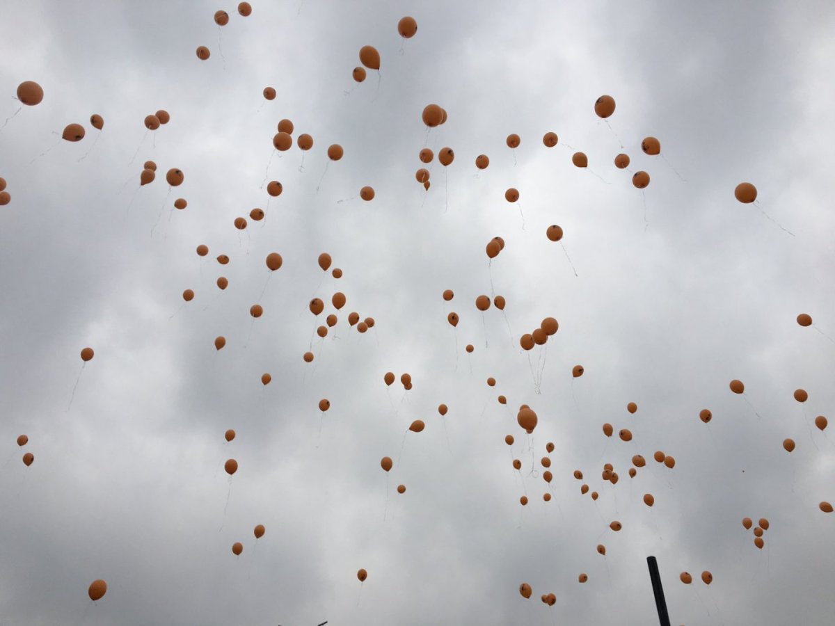 Trotz des regnerischen Wetters konnte Berlin gegen Nazis nahezu 500 Luftballons an die Teilnehmer_innen einer Protestkundgebung gegen den rechtsextremen Aufmarsch verteilen. Viele Familien waren extra wegen der Luftballonaktion vor Ort und bereicherten die Proteste.