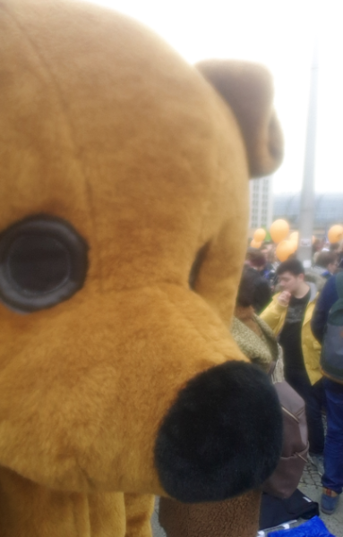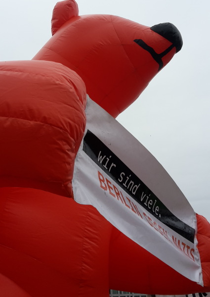 Auch der vier Meter hohe Aufblasbär zeigte in Richtung der Rassist_innen eine klare Botschaft: "Berlin gegen Nazis. Wir sind viele."