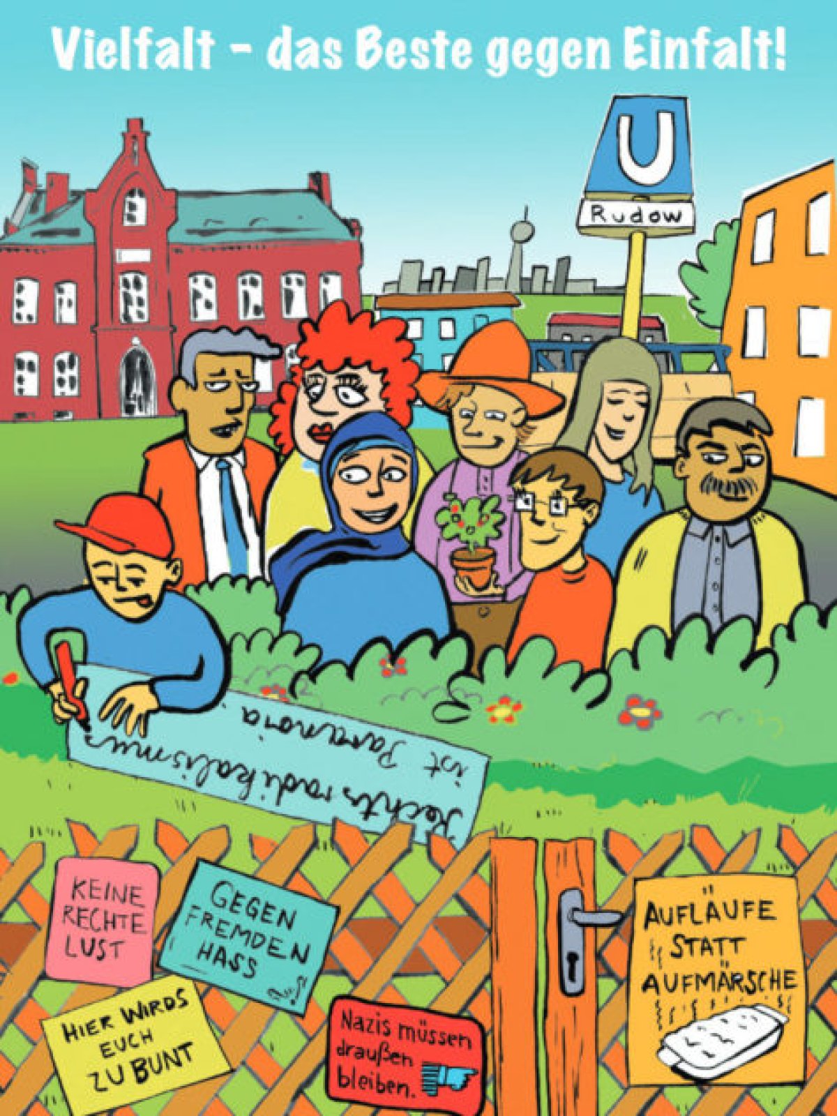 Im Aufruf (PDF) des Aktionsbündnisses Rudow für Demokratie und Toleranz gegen Rechtsextremismus und Fremdenfeindlichkeit heißt es: