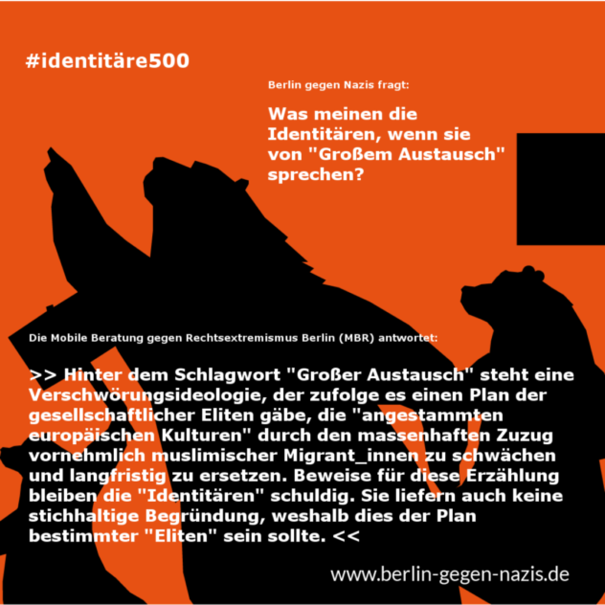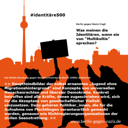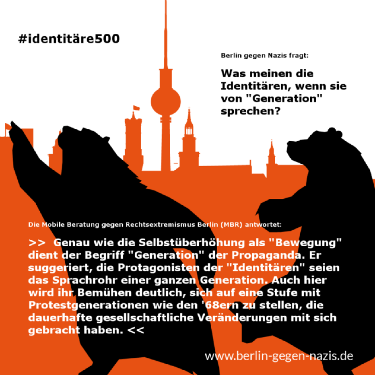 Das Ziel von #identitäre500 war es diese Begriffe auf ihren klassisch rechtsextremen Gehalt zurückzuführen, um zu zeigen, dass die Identitären nur eine neue Gruppierung innerhalb der rechtsextremistischen Szene sind, deren Inszenierung durch konsequente Analyse ihrer Inhalte aufgebrochen werden kann.