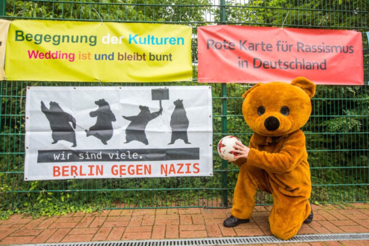 Am Morgen des Aufmarschtages führte Berlin gegen Nazis zwei Fotoshootings auf Sportveranstaltungen in der Mitte von Berlin durch. Das 8. Interkulturelle Fußballturnier von Narud e.V. unter dem Motto "Fluchtursachen bekämpfen" im Wedding und die Respect Gaymes 2017 vom LSVD - Lesben- und Schwulenverband Berlin-Brandenburg e.V. positionierten sich gemeinsam mit dem "Berlin gegen Nazis"-Plüschbären gegen den rechtsextremen Aufmarsch am Nachmittag und solidarisierten sich mit den Gegenprotesten.