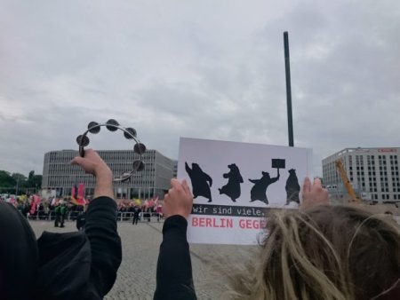 Eine Demonstration des Berliner Bündnis gegen Rechts, ein Zusammenschluss von Vereinen, Verbänden und linken sowie antifaschistischen Gruppen, führte mit über 300 Teilnehmer_innen vom Rosenthalter Platz Richtung Hauptbahnhof und setzte auf der Route durch die Spandauer Vorstadt ein lautes Zeichen gegen den rechtsextremen Aufmarsch. Die Demonstration führte zu einer Kundgebung des Bündnisses am Hauptbahnhof direkt an der Auftaktkundgebung der Rechtsextremen. Auch der "Berlin gegen Nazis"-Aufblasbär war auf dieser Kundgebung in Sichtweite der Rechtsextremen positioniert. Viele Berliner_innen nutzen die "Berlin gegen Nazis"-Klatschpappen um ihren Protest auszudrücken. Aufgrund der erst vier Tage vorher bekannt gewordenen Aufmarschroute gab es an der Wegstrecke keine vorbereiten Gegenproteste und nur sehr vereinzelte Positionierungen gegen den Aufmarsch durch Anwohner_innen. Berlin gegen Nazis hat auf diese problematische Informationspolitik gegenüber den Anwohner_innen von rechtsextremen Aufmärschen im Vorlauf des 01.07. erneut hingewiesen. Wie der rbb unter dem Titel "Berlin will künftig Ort und Zeit von Demos veröffentlichen" berichtet, soll diese Informationspolitik durch eine Änderungen des Versammlungsrechtes geändert werden.